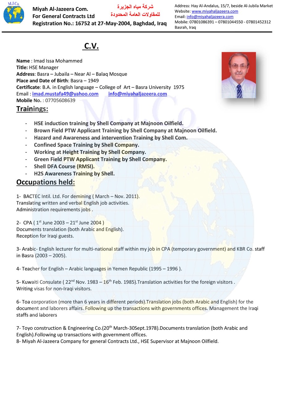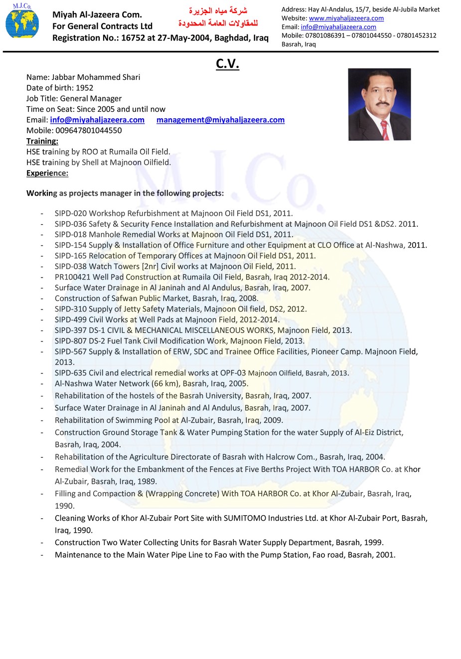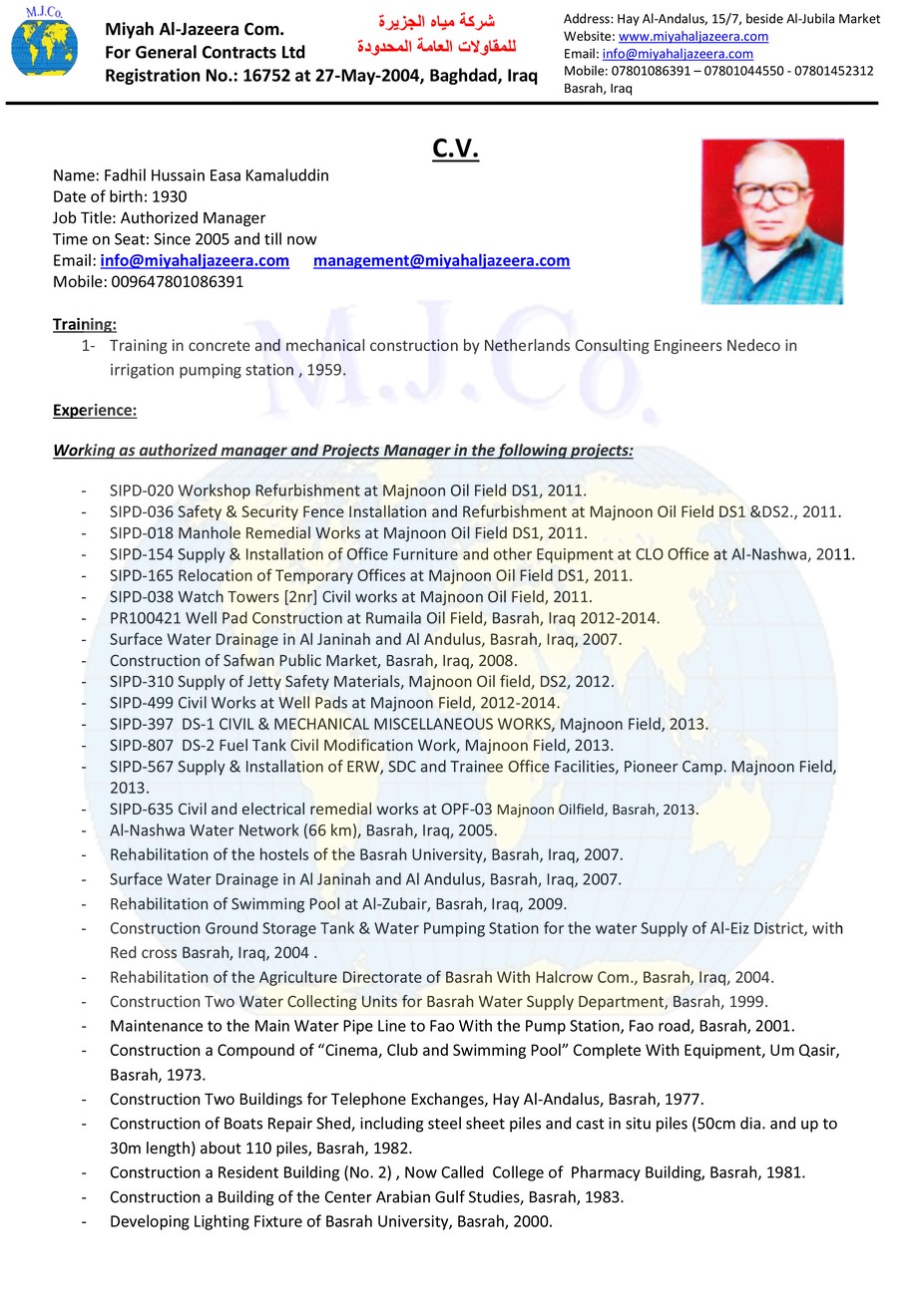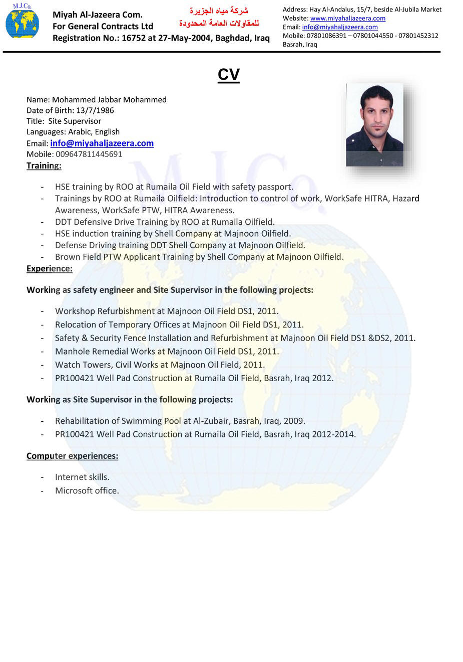 Education: B.Sc. in Civil Engineering, Basrah University,2004